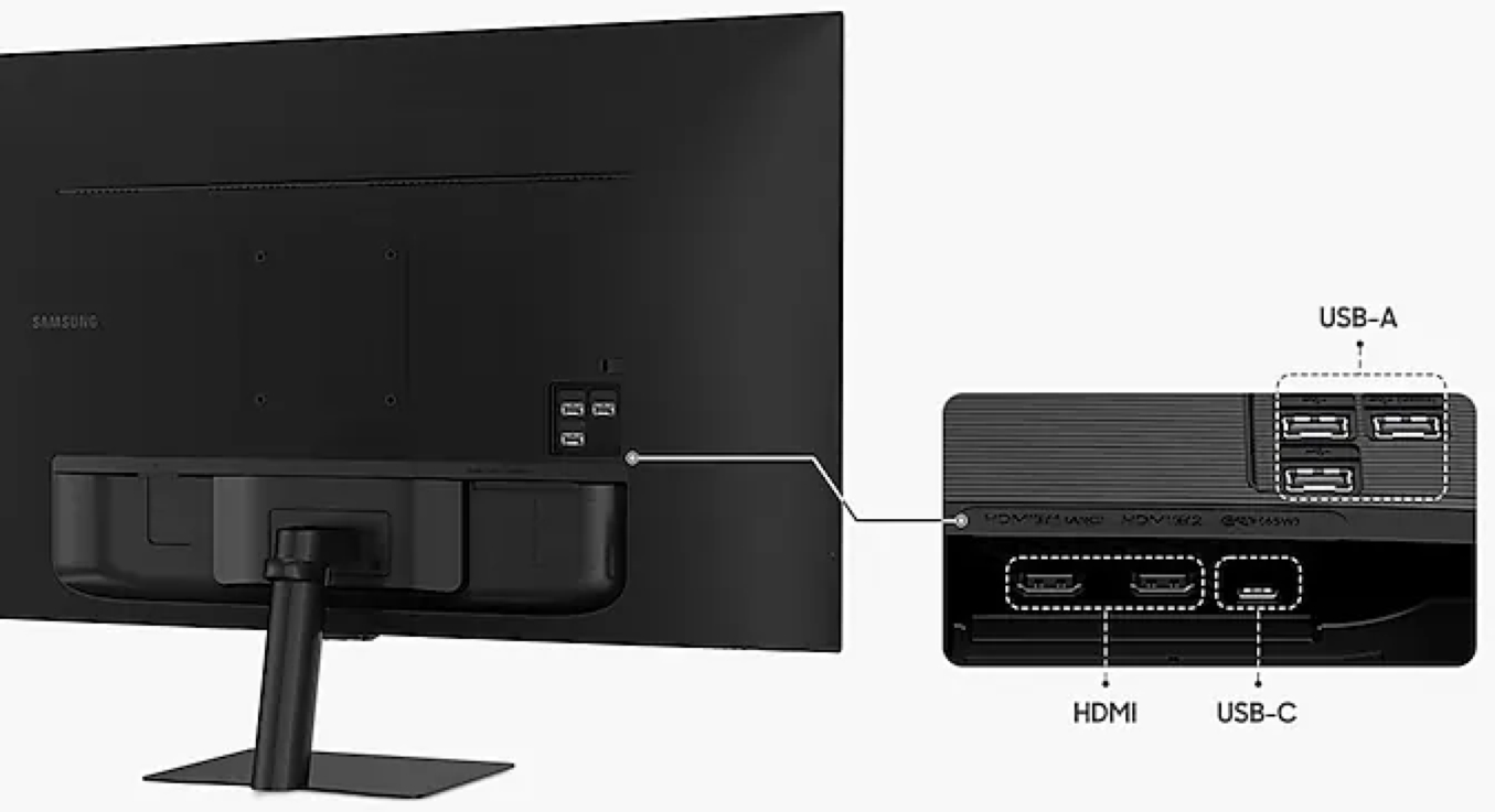 Благодаря портам USB-C, HDMI и USB-A вы можете полностью подключить монитор Smart Monitor без использования переходников. Заряжайте устройства, передавайте данные и используйте все возможности мультиэкранной системы - или делайте все сразу - благодаря четырем доступным портам.
