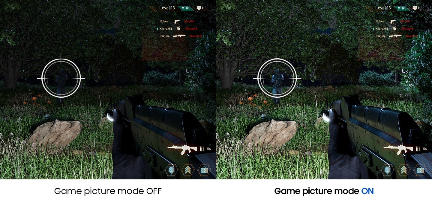 Получите конкурентное преимущество благодаря оптимизированным настройкам игр. Цвет и контрастность изображения можно мгновенно настроить, чтобы четче видеть сцены и замечать врагов, скрывающихся в темноте, а режим Game Picture Mode настраивает любую игру, чтобы заполнить экран всеми деталями.