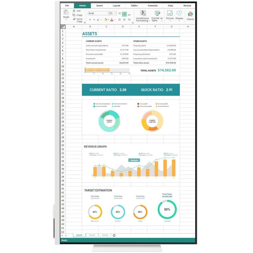 Сделайте свое рабочее пространство более удобным с помощью стильного и комфортного Smart-монитора. Его регулируемая подставка позволяет без усилий наклонять, поворачивать и изменять высоту, чтобы вы могли с комфортом просматривать длинные документы.