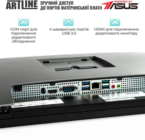 ARTLINE Business GT43v01 поставляется в элегантном корпусе Artline Business GT40, который сочетает в себе стиль и функциональность. Моноблок имеет COM (RS-232) порт для подключения дополнительного оборудования и возможность стандартного VESA-крепления, позволяющего легко установить моноблок на стену или подставку.