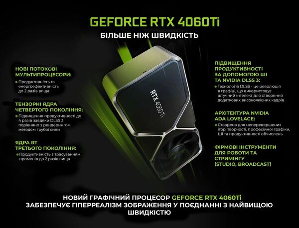 Графический процессор GeForce RTX 4060 Ti 8 ГБ от NVIDIA предоставляет потрясающую графику и реалистичные визуальные эффекты. Это позволит наслаждаться невероятным детализацией и плавными кадрами в каждой игре, обеспечивая захватывающий игровой опыт.