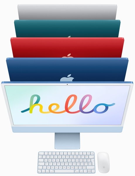 Клавиатура, мышь и трекпад представлены в тех же цветах, что и новый iMac. У Magic Keyboard теперь есть отдельные клавиши для Spotlight, Диктовки, эмодзи и функции «Не беспокоить».