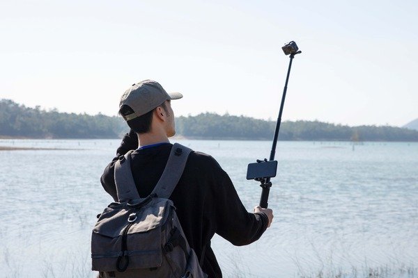 Выдвижной монопод Osmo Action может достигать максимальной длины 908 мм, что позволяет снимать под разными углами. Универсальный интерфейс в верхней части совместим с большим количеством экшн-камер с регулируемым углом наклона до 90°. Встроенный зажим для телефона удобен для переключения и поворота телефона для большего угла съемки и даже позволяет управлять DJI Action 2 или Osmo Action для съемки, записи и переключения между передним и задним экранами. Стандартное 1/4-дюймовое крепление внизу можно соединить со штативом. Вы также можете закрепить зажим для телефона на верхней части устройства и использовать его как палку для селфи.