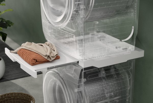 Установка стиральной и сушильной машины в колонну - отличный способ экономии пространства. Соединительный элемент позволяет надежно установить сушильную машину на стиральную - больше возможностей для сортировки или складывания вещей. Универсальный соединительный элемент совместим со стиральными и сушильными машинами Electrolux с фронтальной загрузкой и глубиной 52–67 см.
