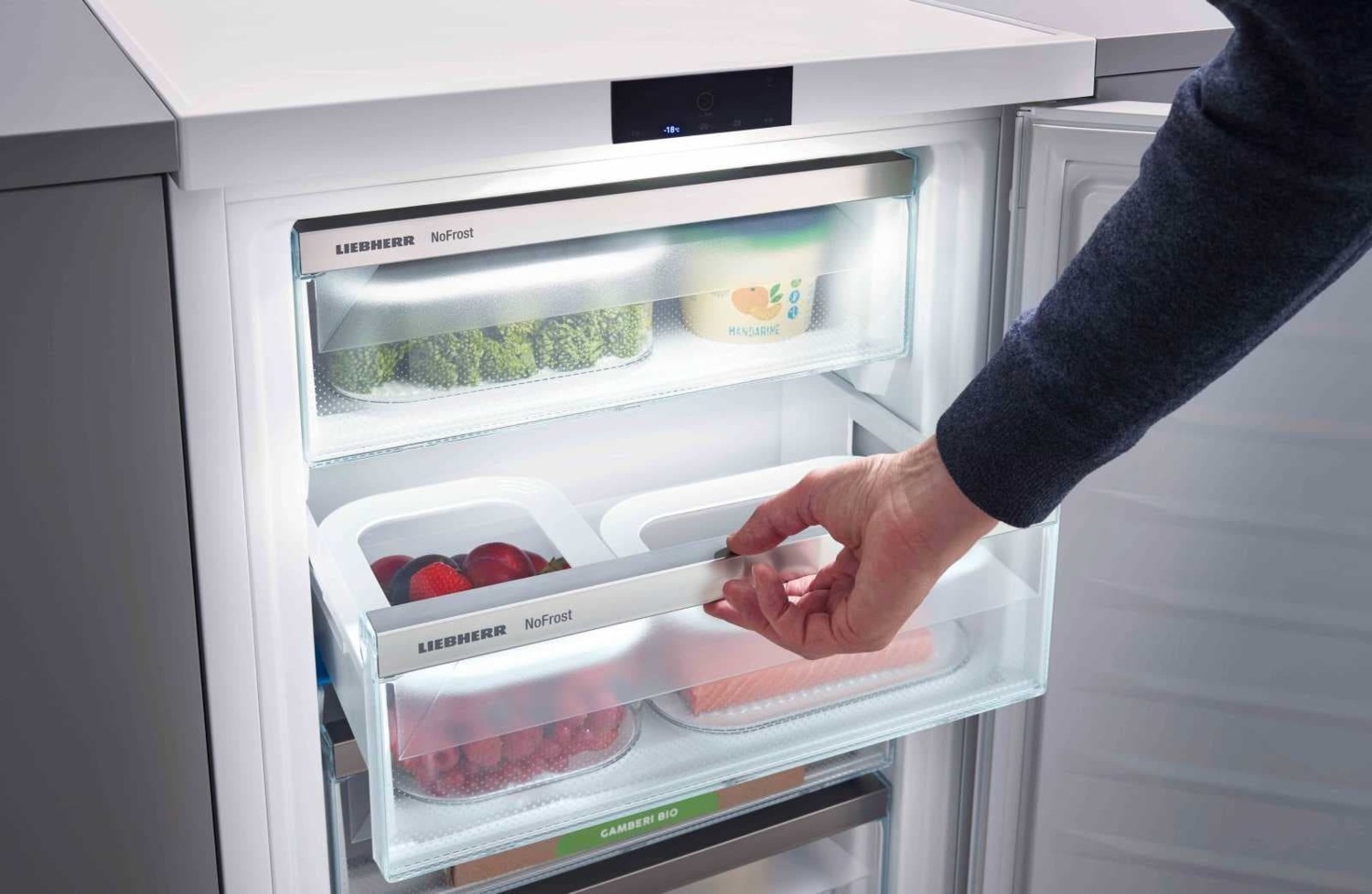 Когда вы открываете ящики в вашей морозильной камере Liebherr, вас встречает не только вид ваших продуктов, но и привлекательное освещение. Его обеспечивают мощные, долговечные и экологически чистые светодиоды. Освещение облегчает обзор всего содержимого и является уникальным элементом дизайна.