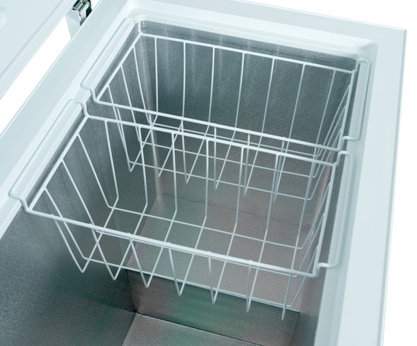 - Морозильный ларь оснащен крышкой и ручкой для удобного открывания. Внутри ларя есть съемный ящик для удобства организации и доступа к продуктам.