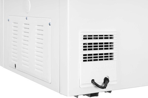 Удобную транспортировку по ровной поверхности обеспечивают колесики, а для надежной установки предусмотрены ножки с функцией регулировки высоты. В комплектацию входит форма для льда и скребок для быстрой очистки от льда. Для ручного размораживания предусмотрен специальный слив с двумя крышками.