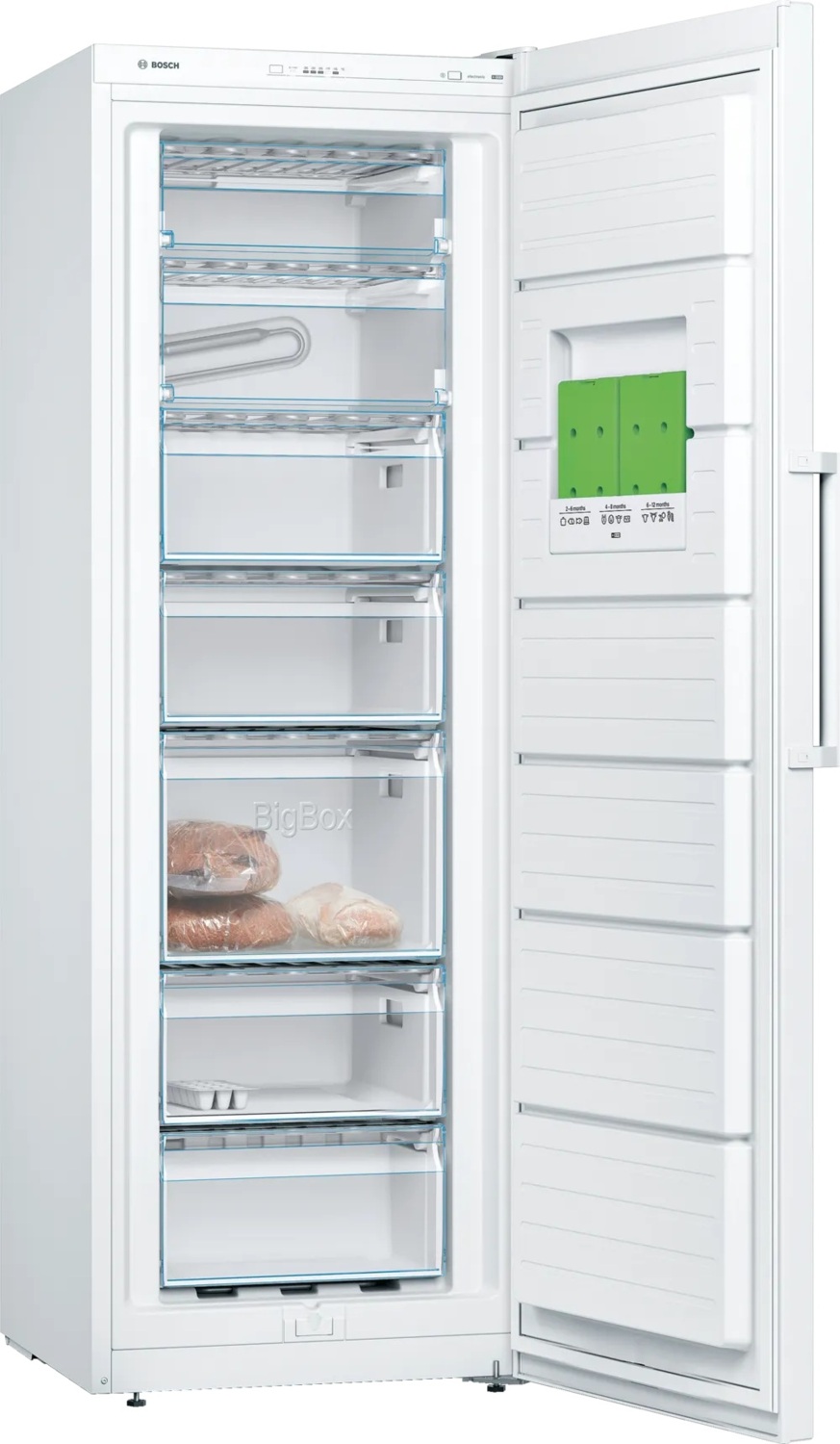 В морозильной камере, помимо стандартных контейнеров, вы найдете просторный контейнер BigBox высотой 29 см, в который без труда поместятся "крупногабаритные" продукты. Например, индейка весом до 8 кг.