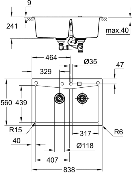 - Мойка кухонная Grohe K700, 838x560x241мм (31657AP0)