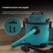 Удаляйте любую грязь, как твердую, так и жидкую, наиболее удобным способом благодаря своей универсальности и резервуару без мешка для сбора практически любой грязи и пыли.