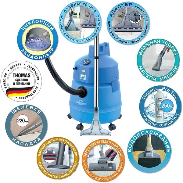 | Дополнительно | Моющие пылесосы с аквафильтром, Моющие пылесосы с сухой уборкой, Моющие пылесосы THOMAS с аквафильтром, Пылесосы THOMAS с сухой уборкой, Мощные пылесосы, Безмешковые пылесосы, Мощные пылесосы без мешка |