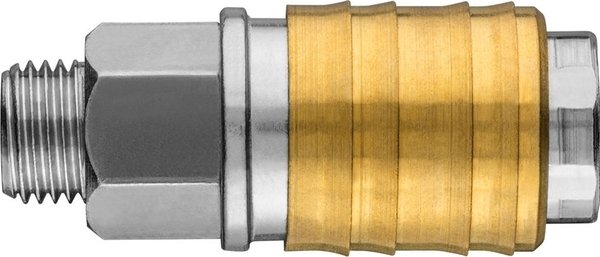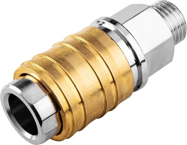 Быстроразъемное соединение для компрессора с наружной резьбой M 1/4", изготовленное из высококачественной нержавеющей стали и латуни. Максимальное рабочее давление 16 бар. Изделие имеет маркировку CE, что подтверждает соответствие директивам по безопасности. Бренд Neo соответствует ожиданиям профессионалов.