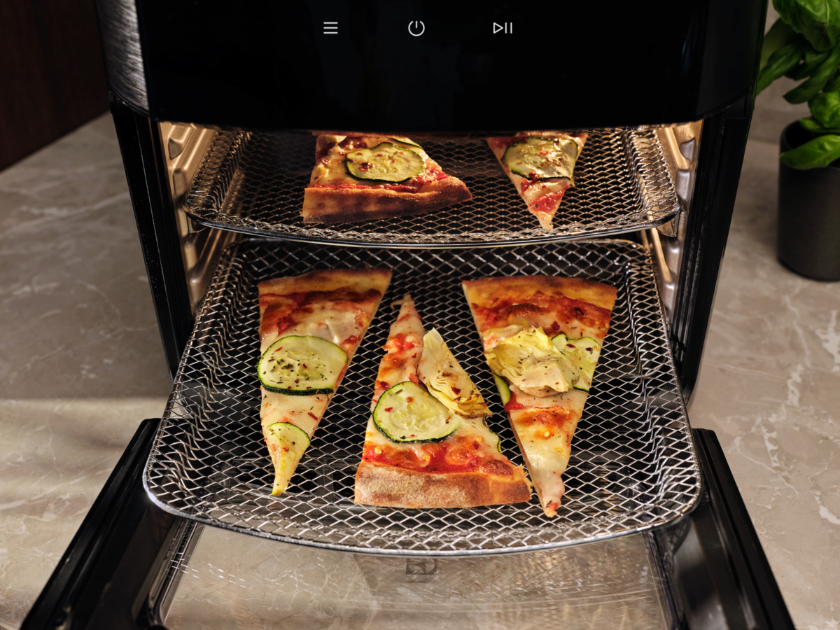 Наслаждайтесь универсальностью, которую предоставляет вам аэрофритюрница большой вместимости. Этой аэрофритюрницы достаточно для приготовления персональной пиццы, девяти маффинов или 1 кг картофеля фри.