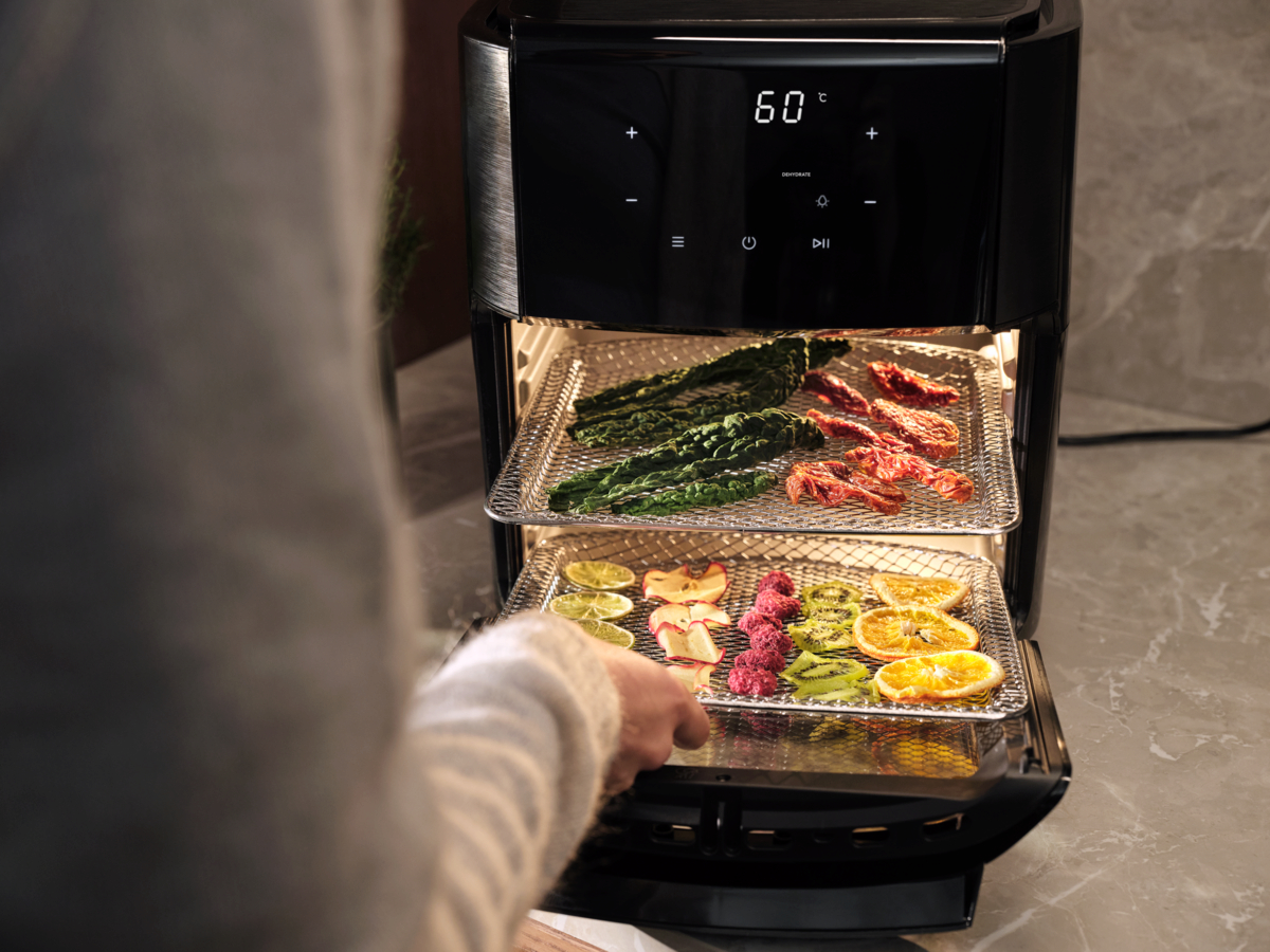 Быстро и легко готовьте любимые закуски или создавайте заготовки длительного хранения с помощью функции сушки. Сушеные ломтики яблок или ягоды станут вкусным быстрым перекусом. А сушеные грибы можно потом добавлять в рагу или соусы. Здоровый способ хранения пищи.