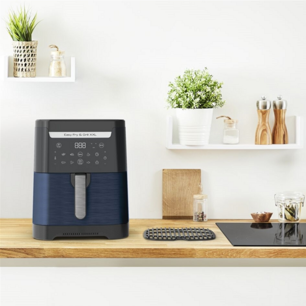 Для быстрого и здорового домашнего приготовления Easy Fry предлагает легкое приготовление день за днем для 8 человек. Добавьте или выньте удобную перегородку, чтобы перейти от емкости XXL для больших ингредиентов к двойной чаше, чтобы готовить 2 разных блюда одновременно благодаря интеллектуальному режиму синхронизации. Откройте для себя технологию жарки с особой хрустящей корочкой для вкусных блюд, жареных с меньшим количеством масла, и технологию гриля для жарки всех видов пищи.