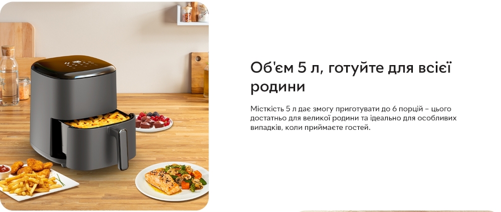 Готовьте здоровые блюда для всей семьи благодаря емкости 5 л, идеально подходящей для 6 человек.