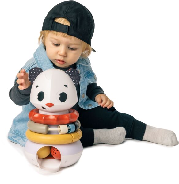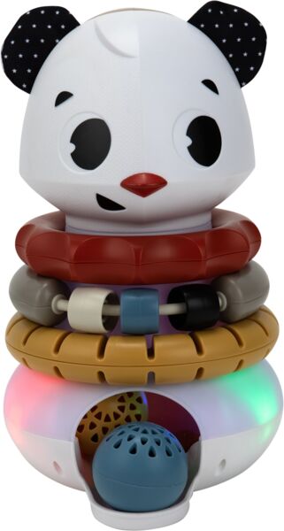 Развивающая игрушка-пирамидка 3 в 1 Tiny Rockers - игра, которая учит и увлекает! Эта универсальная игрушка объединяет сразу три любимые активности малышей: веселое бросание мячиков, складывание колец и музыкальную игру. Малыши с радостью бросают шарики в голову забавной панды - и каждый раз получают волшебное вознаграждение в виде света и музыки. Такая игра не только развлекает, но и помогает развивать причинно-следственное мышление, моторику и координацию. Яркие шарики и кольца имеют различные текстуры и звуки, стимулирующие слух, зрение и осязание. А мягкие ушки панды дарят приятные тактильные ощущения. Благодаря бесшумному режиму ребенок может играть даже тогда, когда тишина дома - на вес золота.