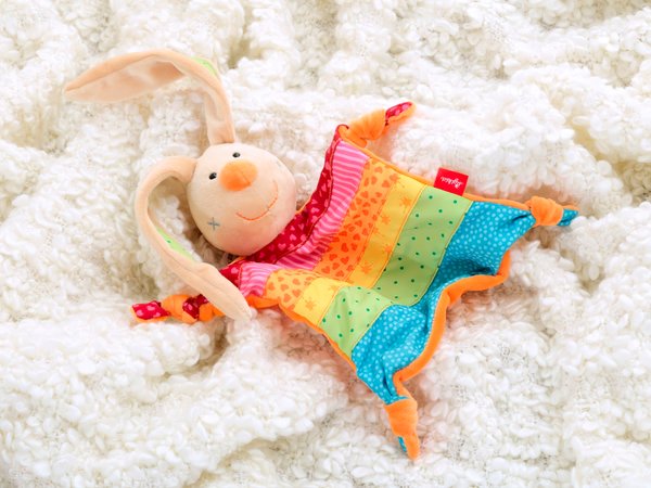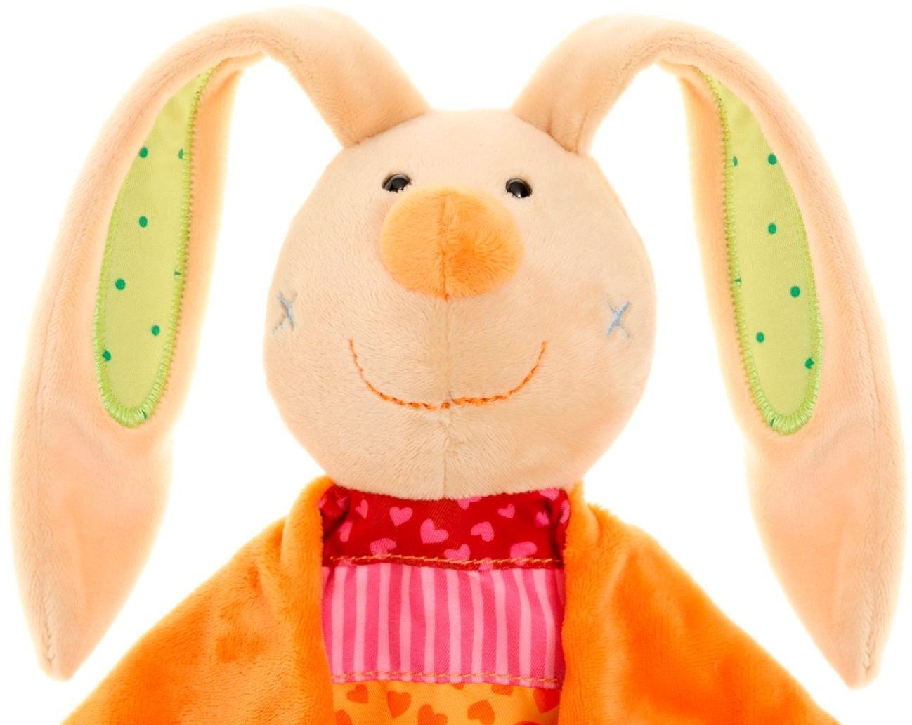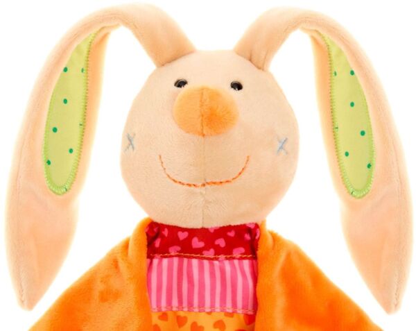 Самое главное - что игрушка очень мягкая и комфортная, лежит на диване и уже создает уют. sigikid мне посоветовала мама - она любит эту фирму (как и я) и постоянно берет для малышки что-то новенькое. Кролика увидела случайно, в этом магазине, мне сразу бросился в глаза цвет - яркий, насыщенный, многоярусный, мордочка интересная и улыбчивая. Поможет в развитии моторики, материалы не токсичны и безопасны для ребенка, габариты не большие. Никаких отрывных элементов, кроме уха, нет, и дочка сразу же его оторвала, как немного подросла - пришлось пришивать заново. Главное - после стирки не линяет и сохнет очень быстро.