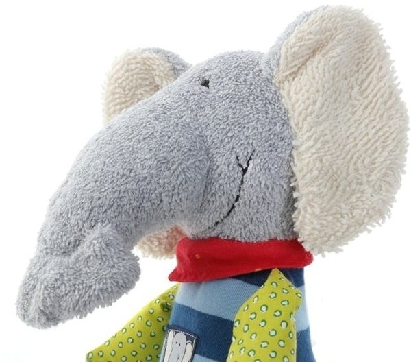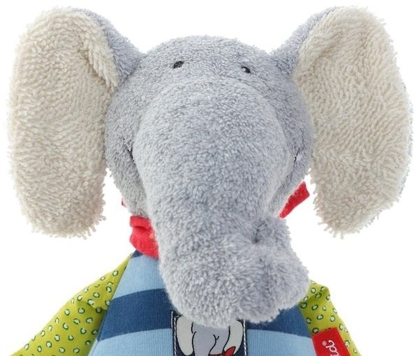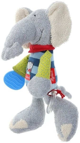 Подарила сыну под елочку мягкого серого слона sigikid. Малыш очень доволен игрушкой. Его приятный на ощупь материал высокого качества, развивает тактильные ощущения ребенка. Одна лапка выполнена в форме прорезывателя для зубов, пластик так же отличный без примесей дешевых материалов и посторонних запахов, позволяет без страха давать возможность крохе попробовать его на вкус. Выбирала на этом сайте по совету друзей. Погремушка на одной ноге данного товара дает возможность развитию фантазии, мелкой моторики и логики. Выглядит слоник будто одет в полосатую футболку с рукавами контрастного цвета, а красный воротничок на шее привлекает особое внимание детей.