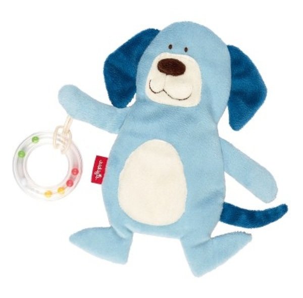 Купить ребенку шуршащую игрушку посоветовала подруга, когда где-то через месяц ребенок начал следить глазками и прислушиваться. Собачка sigikid лучше нескольких игрушек, поскольку совмещает в себе все нужные элементы с помощью которых можно тренировать глазомер, учиться различать звуки, тренировать осязание перебирая игрушку пальчиками. Собачка не маленькая, ребенку не станет скучно и она не потеряется на фоне других, а нежно-голубой цвет не раздражает ребенка, отвлекая яркими оттенками. ребенку нравится щупать игрушку и перебирать ее пальчиками, поскольку она издает звуковой эффект и имеет как гладкие, мягкие детали, так и твердые пластиковые.