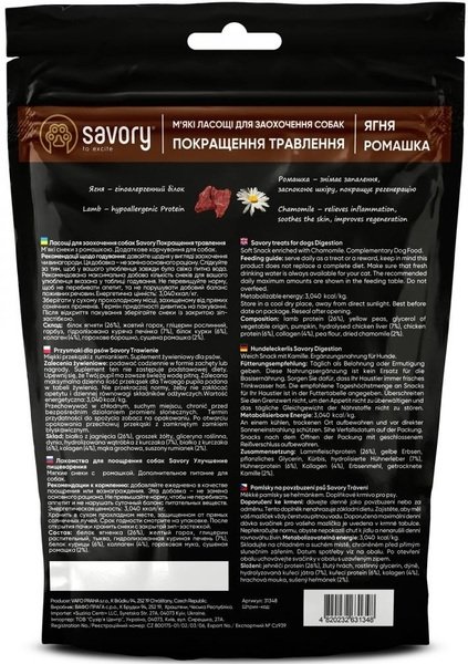 Мягкие Лакомство Savory для улучшения пищеварения собак, ягненок и ромашка 200г