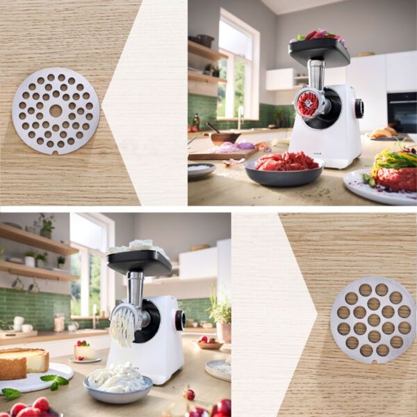 Большая (размер камеры) мясорубка позволяет обрабатывать больше мяса одновременно (до 3,5 кг мяса менее чем за одну минуту), сокращая время и усилия. Планетарный редуктор; обеспечивает мощность там, где она нужна, обеспечивая плавную и стабильную работу. Резиновые присоски на ножках для обеспечения устойчивости прибора во время работы.