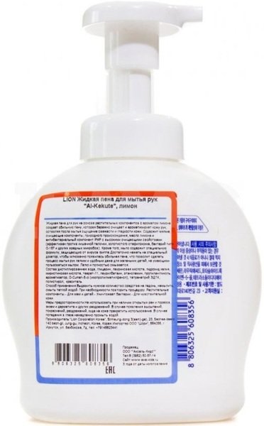 Мыло - пенка Lion Ai Kekute Lemon Bottle Лимон на основе растительных компонентов обладает высокой дезинфицирующей и противомикробной эффективностью. Оно не только придает эпидермису свежесть и гладкость, но и не оставляет ощущения пленки на коже. Благодаря наличию специального компонента Ipmp, оно также обеспечивает защиту от вирусов, кишечной палочки и стафилококка.