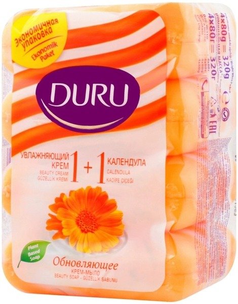 - Мыло туалетное Duru 1+1 С экстрактом календулы и увлажняющим кремом 4 шт 80 г