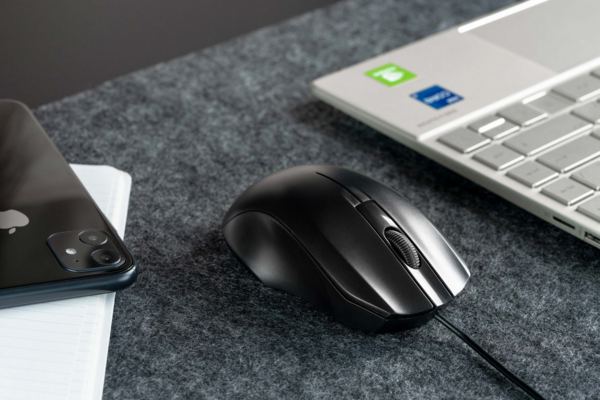 Проводная мышка выполненная в классическом черном дизайне имеющая плавные линии и обтекаемую форму. Мышка всегда готова к работе — просто подключите 1,5 м. кабель к USB порту компьютера и начинайте работать. А ребристое колесико прокрутки поможет сделать скроллинг более четким и контролируемым.