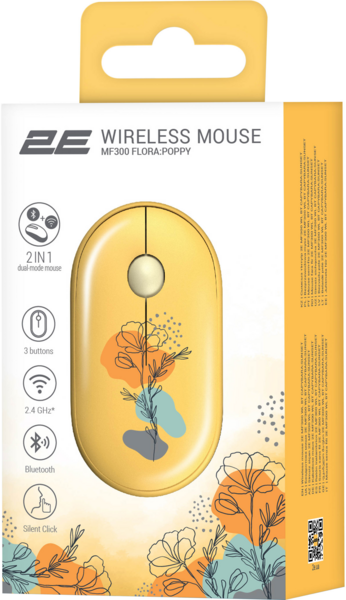 - Мышь 2E MF300 Flora Poppy Silent WL BT Yellow (2E-MF300WFLORAYW)