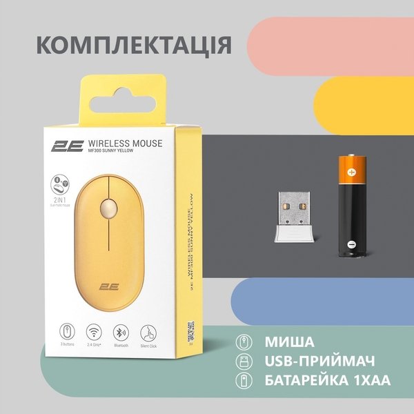 - Мышь 2E MF300 Silent WL BT Sunny yellow (2E-MF300WYW)