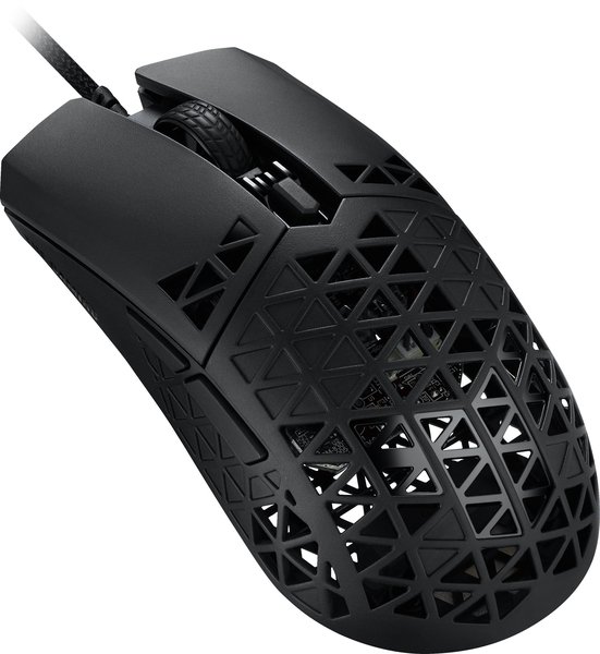 Вес мыши TUF Gaming M4 Air составляет всего 47 граммов благодаря ультралегкому корпусу Air Shell, в верхней части которого используется структурно прочная конструкция из полых треугольников.