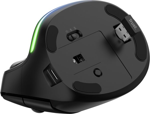Беспроводная мышь с возможностью подзарядки, подсветкой и эргономичной вертикальной конструкцией, снижающей напряжение на руку и кисть