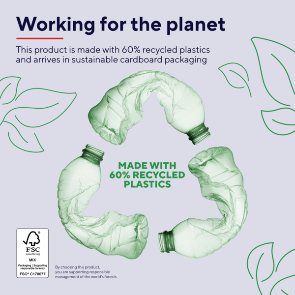 В Ozaa Compact есть все, что вы хотите от мыши. Благодаря компактным размерам она легко ложится в руку, две боковые кнопки и оптический сенсор с разрешением до 3200 DPI обеспечивают более удобную работу, а для более экологичной работы она на 60% состоит из переработанного пластика!