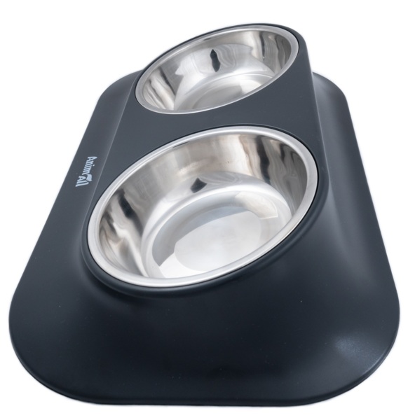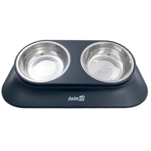 Миска AnimAll металлическая черная двойная 420 мл на подставке