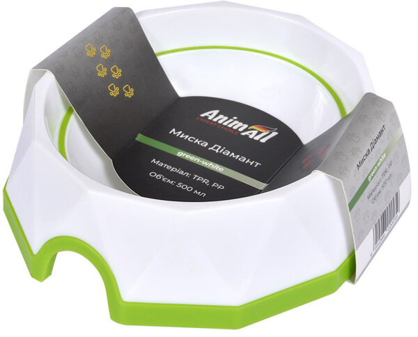 - Миска для собак AnimAll Диамант 500 мл зеленая/белая