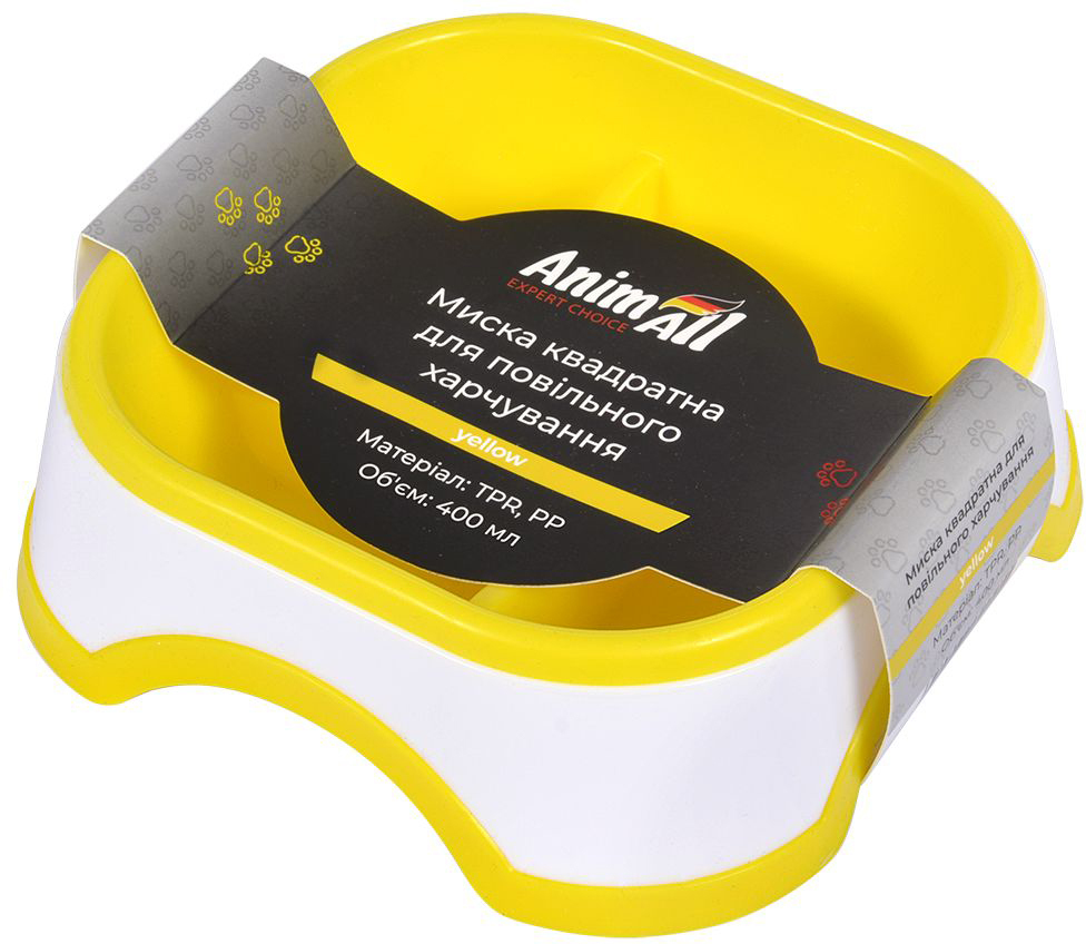 - Миска для собак AnimAll квадратная для медленного питания 400 мл желтая