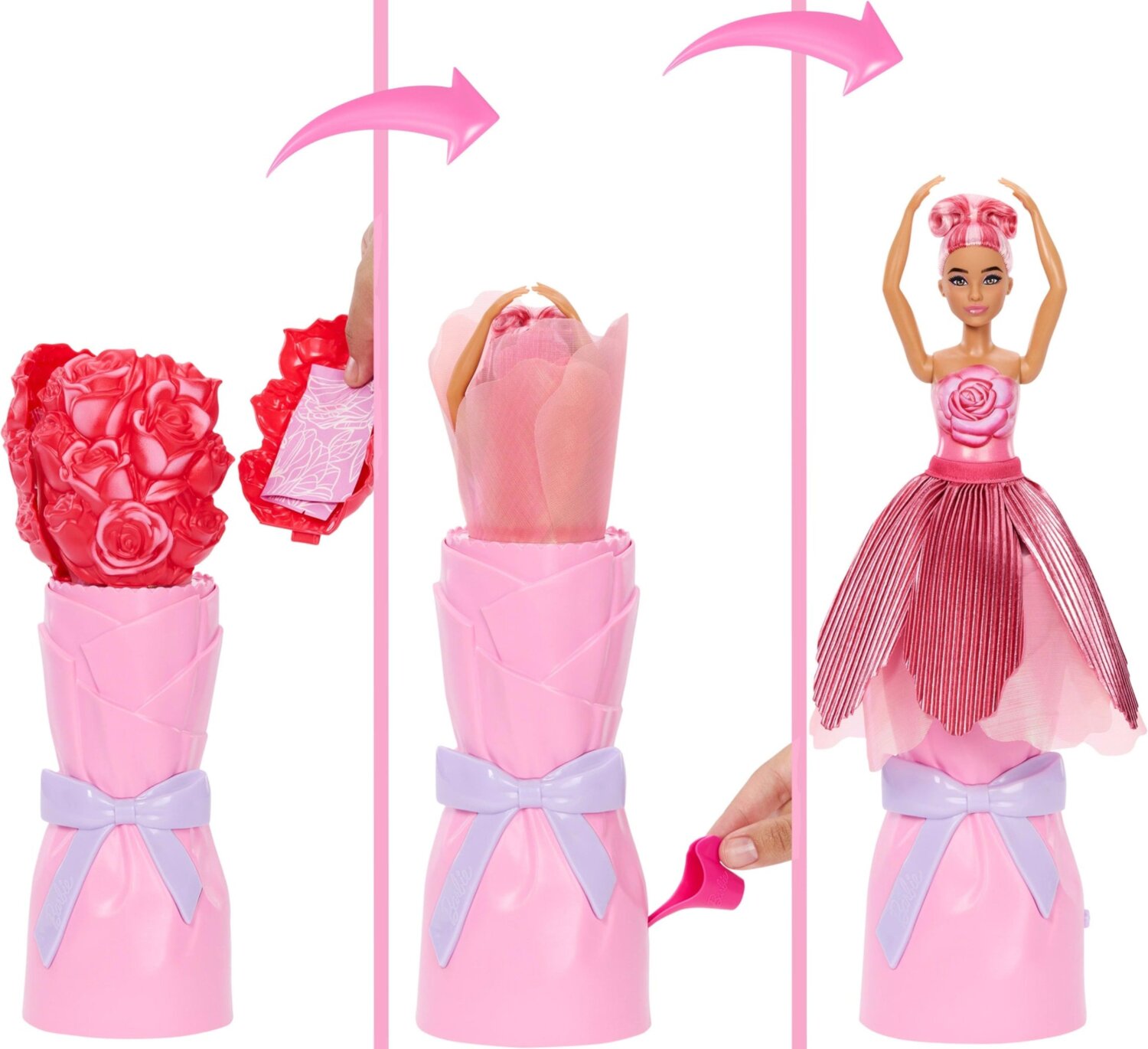 Добавьте в игру цветочную магию вместе с куклами Barbie Petal Pop. Каждая кукла Barbie упакована в букет цветов, что делает процесс распаковки особенно незабываемым.