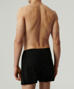 Боксеры имеют свободный крой и оснащены мягкой туннельной резинкой по поясу, которая надежно фиксирует белье, не сдавливая и не раздражая кожу. В комплект входят две модели — черного и графитового цвета, украшенные мелким контрастным геометрическим принтом, придающим классическому дизайну современный акцент.