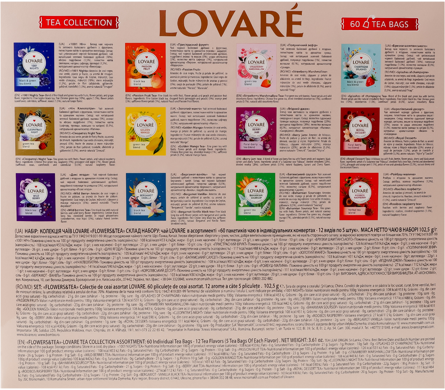 - Набор чая Lovare Flowers&Tea 12 видов по 5 шт