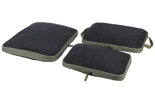 Набор чехлов для упаковки одежды Tucano Pigio Travel 3 в 1 предназначен для упорядоченного размещения вещей в поездках. Комплект состоит из трех органайзеров разного размера для распределения одежды и аксессуаров. Изделия выполнены из прочного текстиля RPET из переработанного пластика. Конструкция ориентирована на рациональное использование пространства чемодана или дорожной сумки. Набор подходит для регулярных путешествий разной продолжительности.