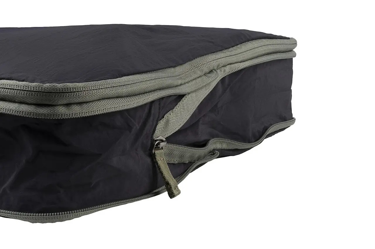 - Компрессионная молния — позволяет снизить объем упакованной одежды до ~50%, что экономит место в рюкзаке или чемодане;