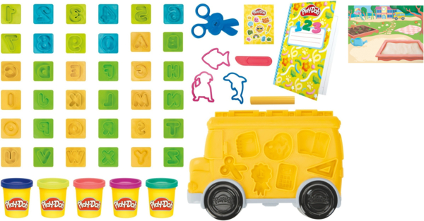 Пусть каждый день будет полон вдохновения и творчества с набором Hasbro Play-Doh «Веселый школьный день». Малыши могут представить себя учителем или учеником, создавать буквы, цифры, животных и школьные принадлежности, используя более 40 аксессуаров.