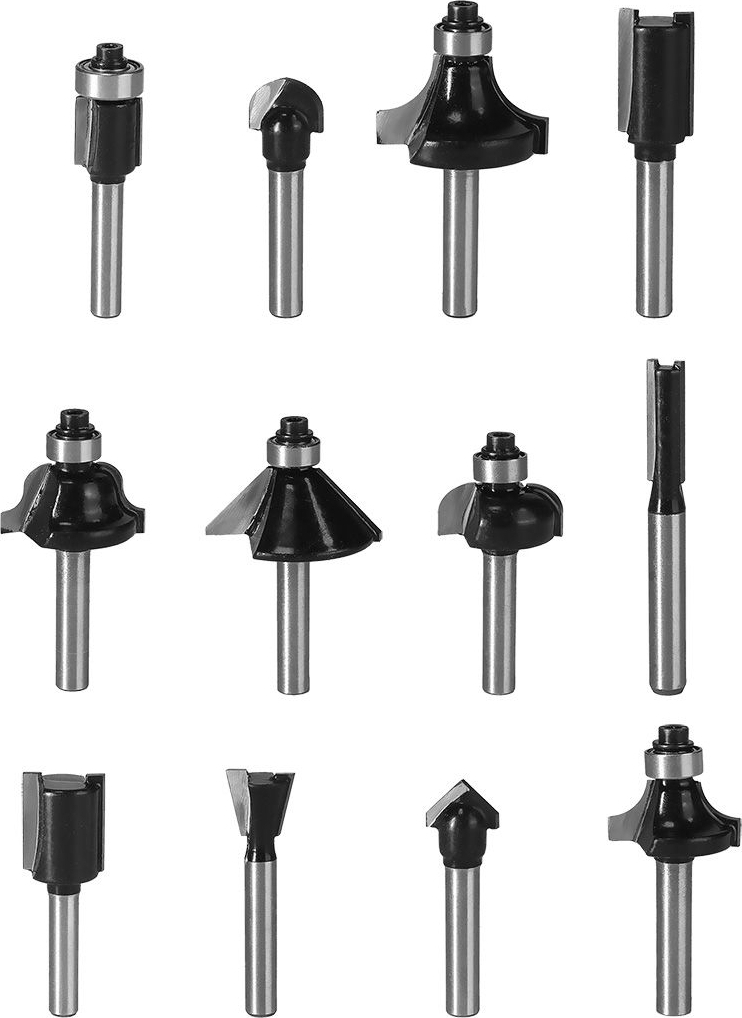 Набор фрез по дереву Graphite с твердосплавными режущими кромками создан для выполнения широкого спектра столярных работ. Карбидные лезвия хорошо сохраняют остроту и обеспечивают стабильное качество реза даже при интенсивной эксплуатации. Комплект из 12 различных фрез позволяет гибко подходить к обработке кромок, выборке пазов, четвертей и декоративному профилированию. Оптимальный выбор для работы с массивом древесины, фанерой, МДФ и ДСП.
