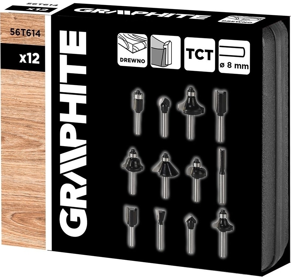 - Набор фрез по дереву GRAPHITE Widia 12шт (56T614)