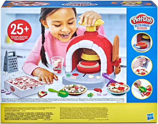 Используйте воображение как главный ингредиент при приготовлении пиццы в печи от Play-Doh. С этим крутым набором ребенок может стать шеф-поваром и сделать креативную пиццу с более чем 25 начинками. Поместите массу для лепки в печь, нажмите на пресс и сделайте основу для пиццы, а затем положите на нее любую начинку.