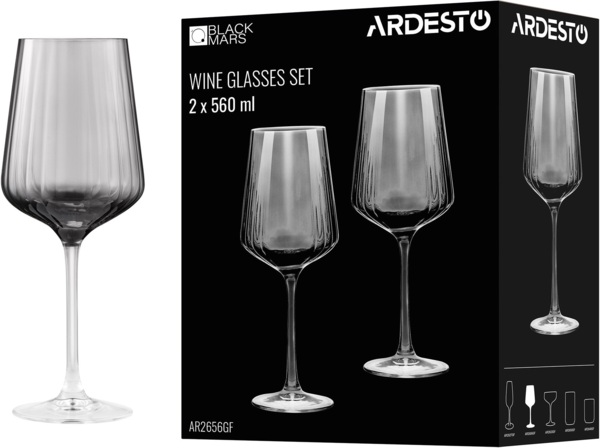 - Набор бокалов для вина ARDESTO Black Mars Alcor 560мл, 2шт, стекло, серый (AR2656GF)
