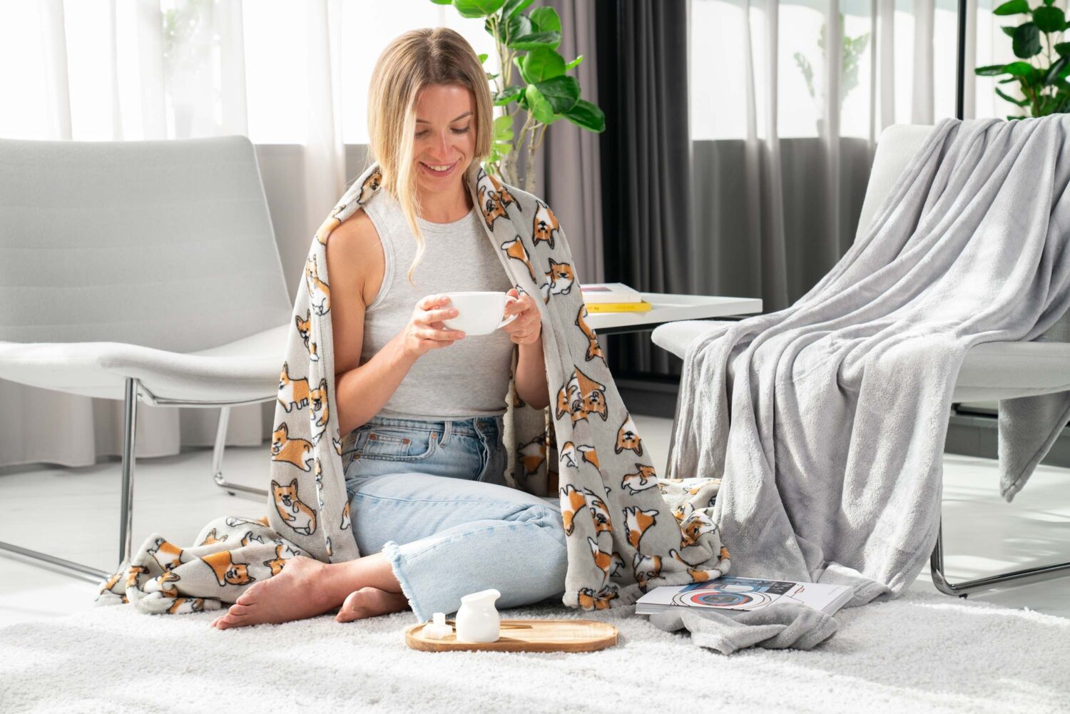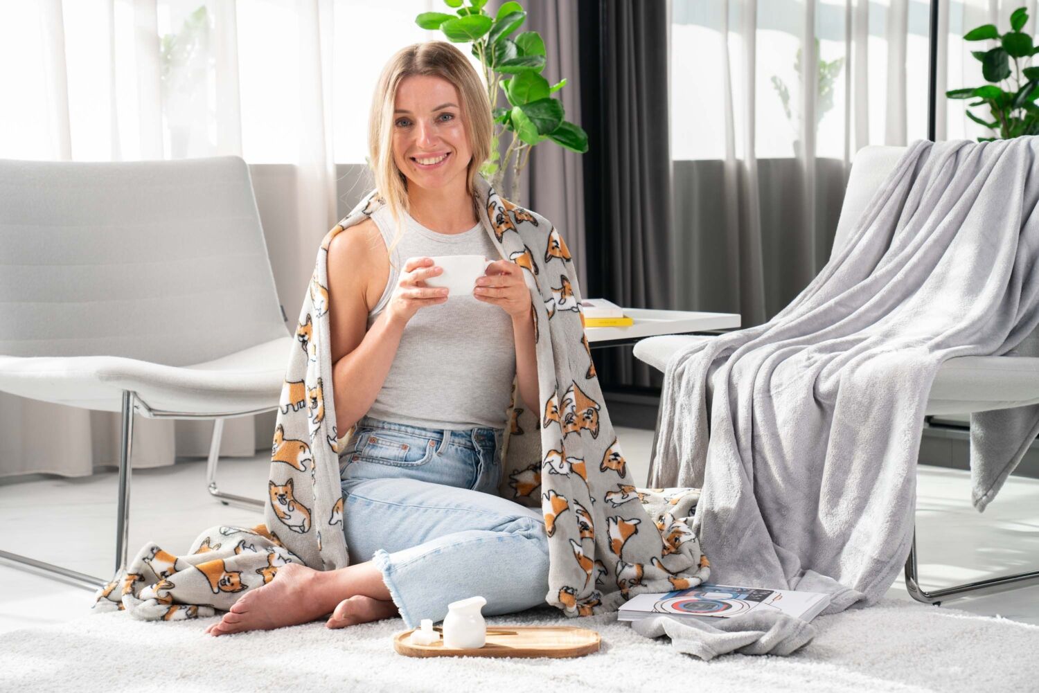 - Набор пледов ARDESTO Flannel 160х200см корги, котики (ART0109P_ART0108PB)
