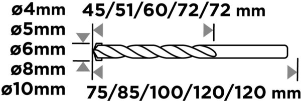 Классическая форма сверл обеспечивает простоту использования со стандартными дрелями и шуруповертами. Четкое соблюдение геометрии способствует ровному сверлению и уменьшает вероятность смещения сверла в начале работы.