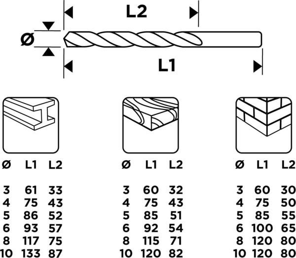 Набор сверл Graphite - практичный комплект для домашней мастерской и монтажных работ, который содержит самые популярные диаметры для сверления различных материалов. В наборе собраны сверла по металлу, дереву и кирпичу, так что вы можете быстро подобрать нужный тип оснастки под конкретную задачу - от сборки мебели и прокладки коммуникаций до установки креплений в кирпичной стене. Самые употребительные размеры позволяют выполнять большинство бытовых работ без дополнительных покупок.